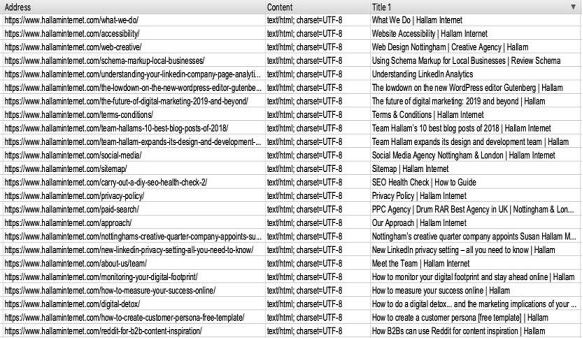如果这里出现了重复内容,应该再使用Screaming Frog抓取一下网站。然后按照页面标题进行排序,就可以检查网站上有哪些重复的页面。