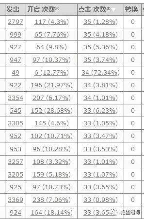 不是上面表格里面的点击率。上面表格的点击率是指:点击次数/发送量。