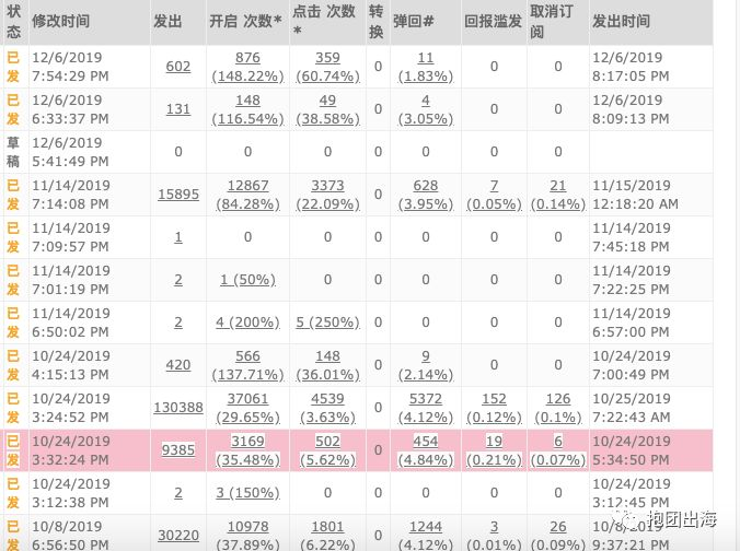 如下图:分析各数据的开启率。开启率,如果邮箱数据质量大致相同情况下,(比如,使用amzhelper的大数据。)那么,我们会发现有一些标题的打开率会比其它标题高很多。那么我们就把这些标题整里面来,设定为高打开率标题 。