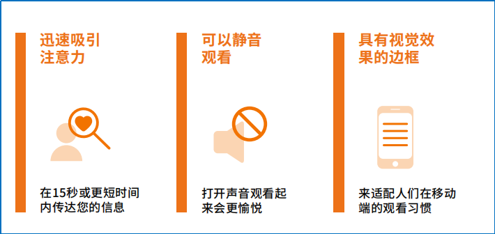 3、最后就是一些小 Tips,广告素材要在更短的时间内传达出主要信息;允许用户静音观看;选择更具视觉效果的边框。
