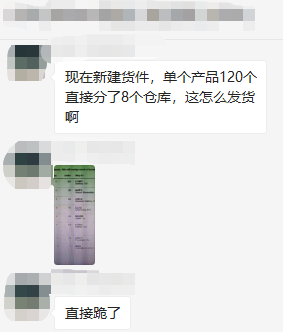 还有卖家诉苦道,刚刚新建货件,单个产品120个,分了8个仓库,直接跪了……