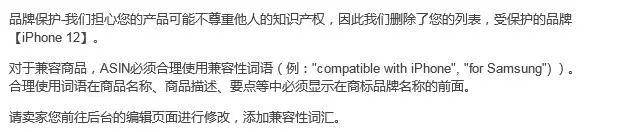 鉴于血淋淋的教训,接下来想要售卖相关产品的卖家要特别注意了!listing里的文字和图片都不能单独出现iPhone 12等手机品牌词,必须加上Compatible with和for等介词,否则链接直接变狗。同时,关键词里面不能直接写品牌,即使加上介词也会被删掉。