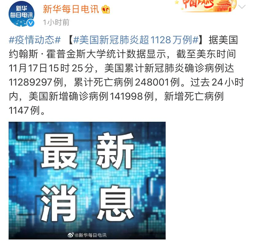 当地时间17日,美国新冠肺炎确诊病例超1128万例,意味着美国平均每30人就有1人确诊新冠。美国《外交政策》杂志指出,美国新冠疫情已达“巨大灾难”级别。