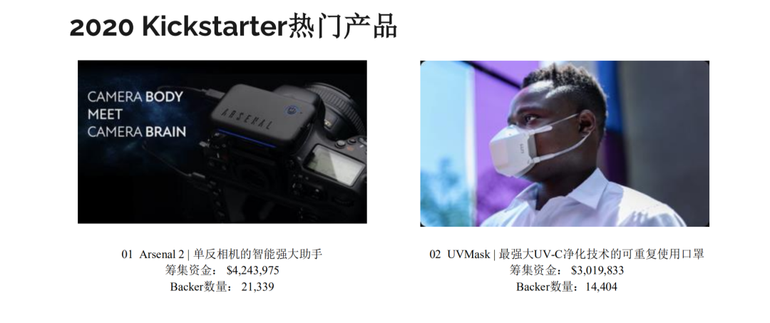 比如一款“单反相机的智能助手”,产品只需简单的操作,就能完成专业摄影师使用单反相机拍摄的效果。据悉,该产品的一代众筹金额达百万美金,而二代产品成功筹得四百万美金。