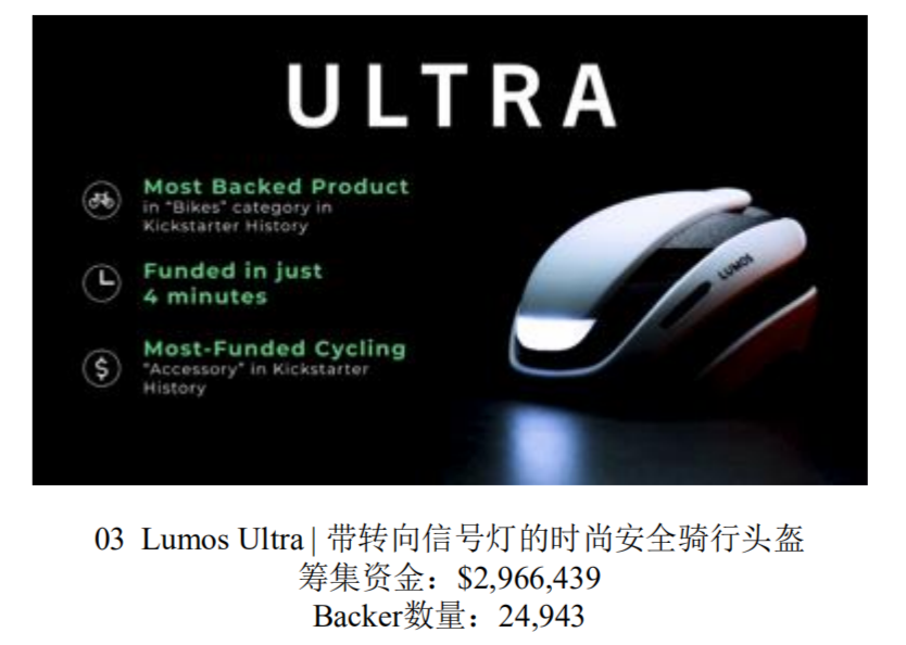 比如国内品牌Lumos的时尚安全骑行头盔,自带前灯和转向灯的“科幻感”,使其上线一个多月后,共售出2万多套产品。