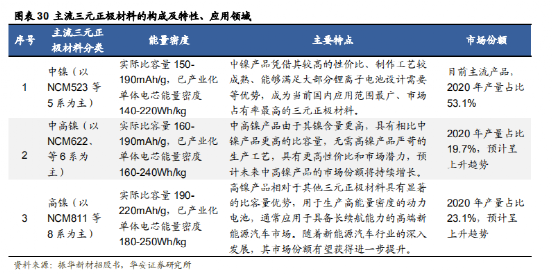 过去主流的电池型号为 NCM523(即正极材料中镍、钴、锰的配比为5:2:3),而后逐渐提高镍的比例、减少钴的用量,比例达到6:2:2或8:1:1。