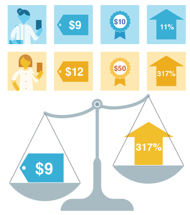 举例来说,如果花9美元可以获得10美元价值的转化和花12美元获得50美元价值的转化,虽然后者的单次成效费用较高,但如果你选择Facebook价值优化,Facebook系统会选择后者,因为其广告花费回报 (ROAS) 比前者要高。