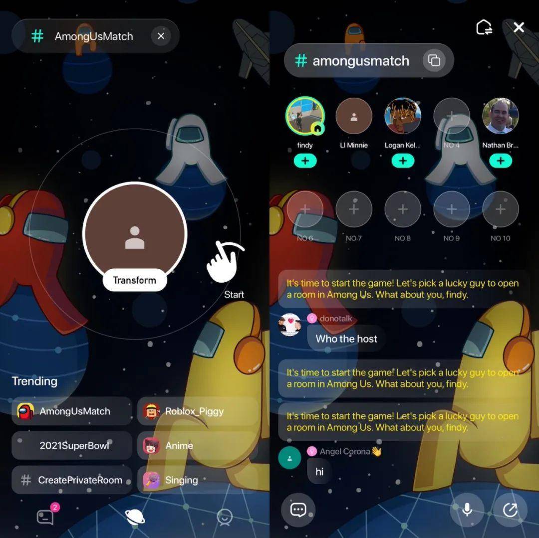 Q:Tiya 最开始流行得益于玩 Among US 游戏的 KOL 带动。不少人会认为,是因为这个游戏火热,Tiya 才切入,产品其实是游戏语音社交 App。