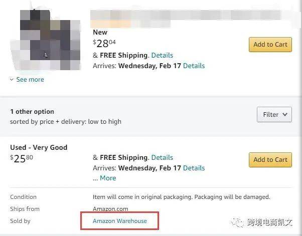 Amazon Warehouse 是亚马逊专门用来销售二手品,对已拆封、退货、仓库受损品等,亚马逊就会以优惠价的方式出售,最可恶一点就是直接挂在卖家Listing下面。
