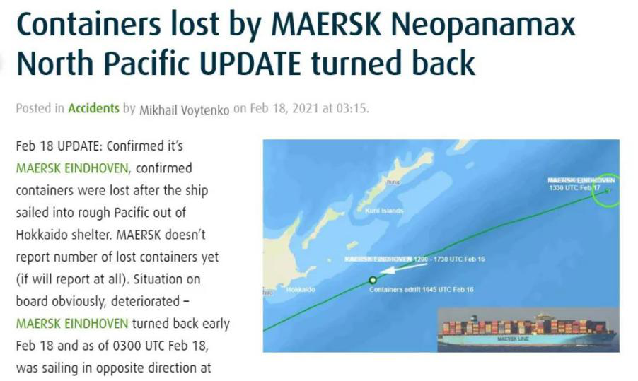 据劳氏日报报道,马士基旗下一艘集装箱船,近日在从厦门港前往洛杉矶港的途中,在日本附近海域遭遇恶劣天气发生掉箱事故,事后发现大量集装箱掉入大海。根据船期表,除了厦门港,该货轮还曾挂靠香港、盐田等港口,满载中国出口货物,原计划于3月10日抵达洛杉矶港,这下到港日变得遥遥无期了。