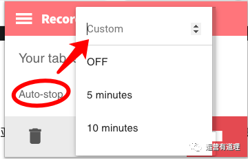 8)你也可以如下图,点击Auto-stop,设置到时间后,自动关闭录制。这是一个非常人性化的功能。