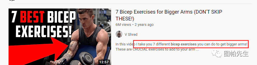 比如截图里面,马上就点明视频内容:7 different bicep exercises you can do to get bigger arms