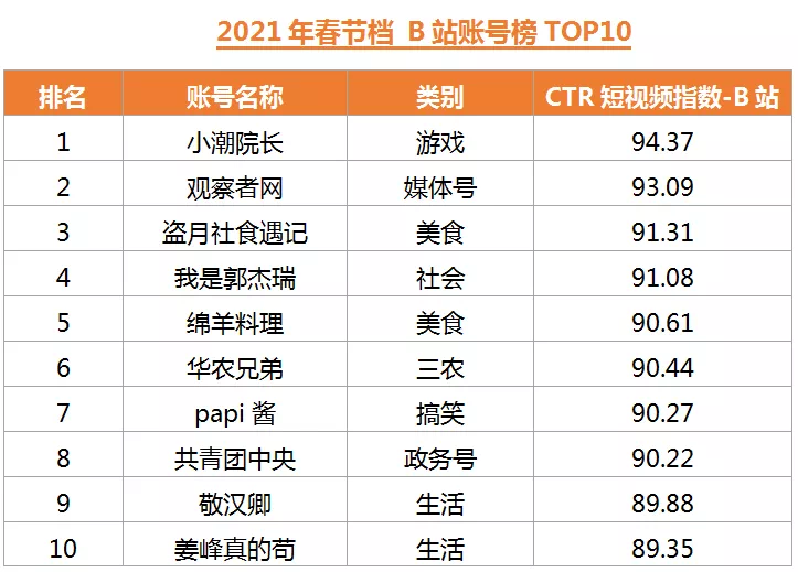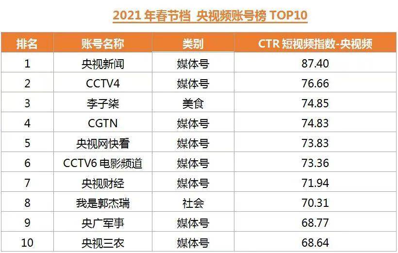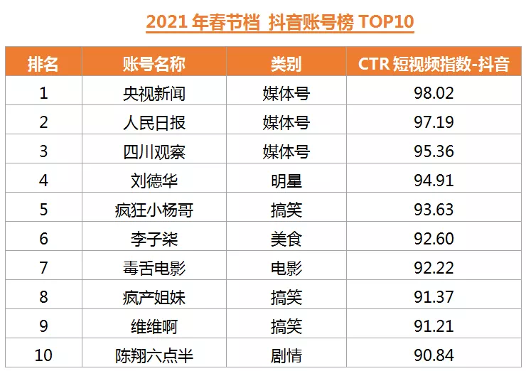 2021年春节档CTR短视频综合榜TOP50|德外独家
