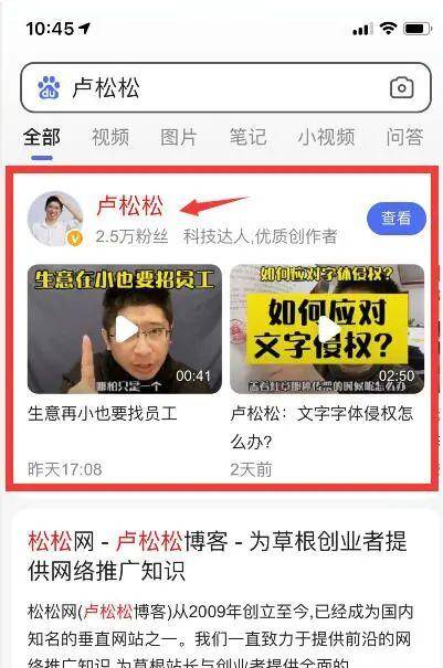 简单讲就是类似公众号名片在微信搜索里面的排名一样,当我们在百度移动端搜索一些关键词的时候,如果关键词与你的百家号名称一致,会直接在百度移动端搜索结果中出现与关键词对应百家号的名片,并且排名相当的高,甚至可以占首页第一。