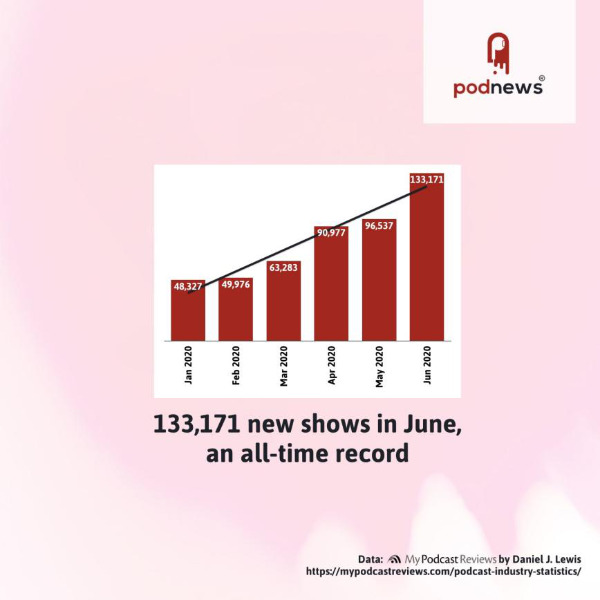 图注:2020年6月,苹果播客上有133171个新节目(来源:MyPodcastReviews)