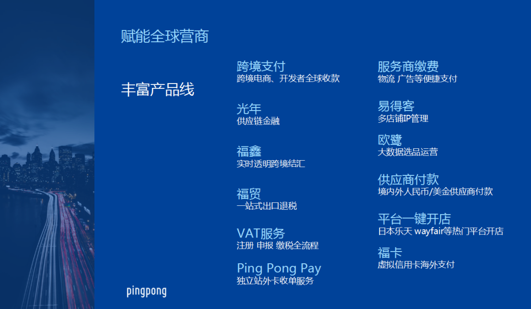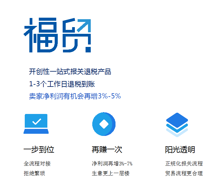 PingPong还推出“福贸”这款产品,它是开创性一站式报关退税产品,1-3个工作日退税即可到账。