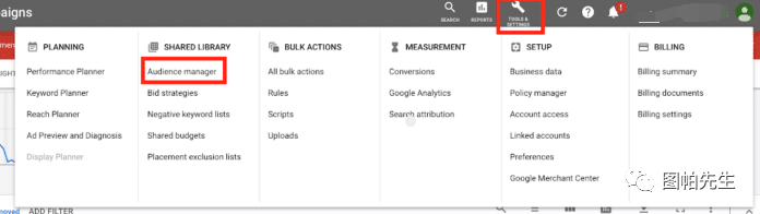 你可以在你的Google Ads帐中的Tools & Settings中,再选择Audience Manager,你会看到刚刚设定好的Audience List,这也代表再营销广告的上半部已经弄好了!