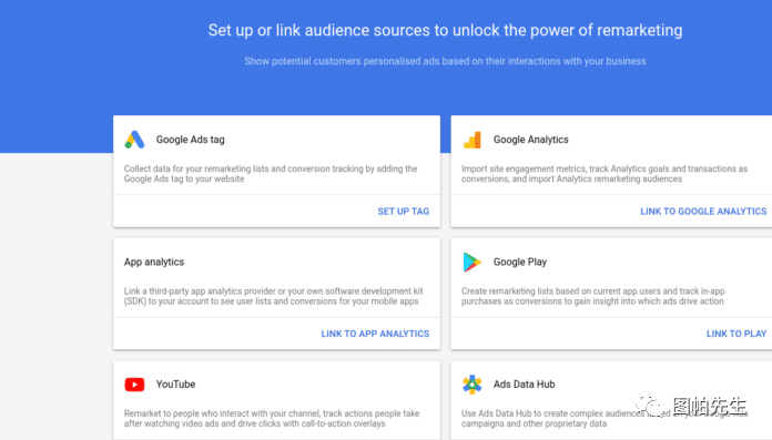 步骤2: 选择Audience Sources,选择Google Ads Tag 的 ‘Set Up Tag”