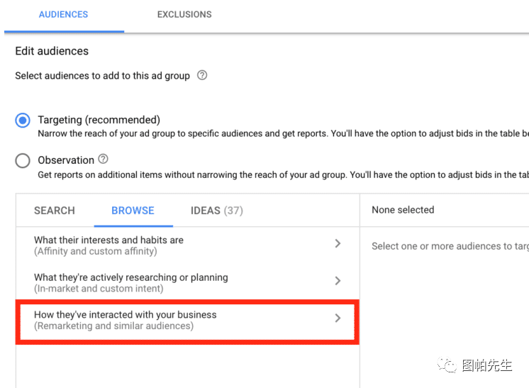 步骤3: 按下Browse,再选择 How they’ve interacted with your business (Remarketing and similar audiences)