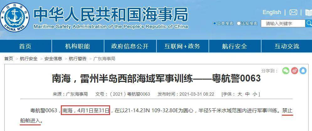 04、粤航警0063,南海,雷州半岛西部海域军事训练