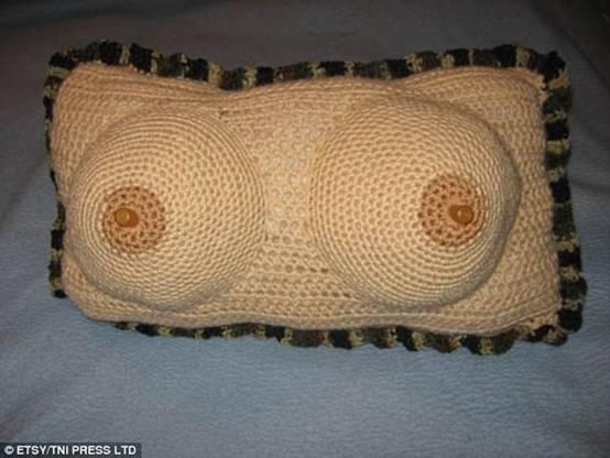 手工钩织乳房形枕头。在妈妈的怀里睡觉的确是最安心的,但是这个枕头看起来一点都不香香软软,觉得硌得慌。