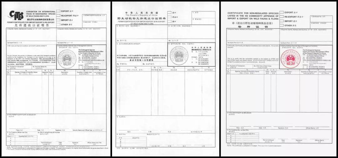 目前,根据海关总署及国家濒危物种进出口管理机构的要求,目前野生动植物及其产品进出口主要涉及3种许可证明: