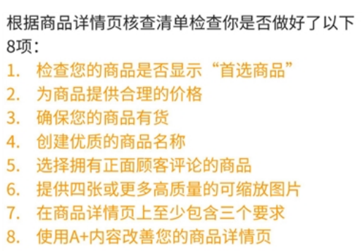 第1步:优化商品详情页,让你的商品成为亚马逊优选广告商品(advertising readiness)。