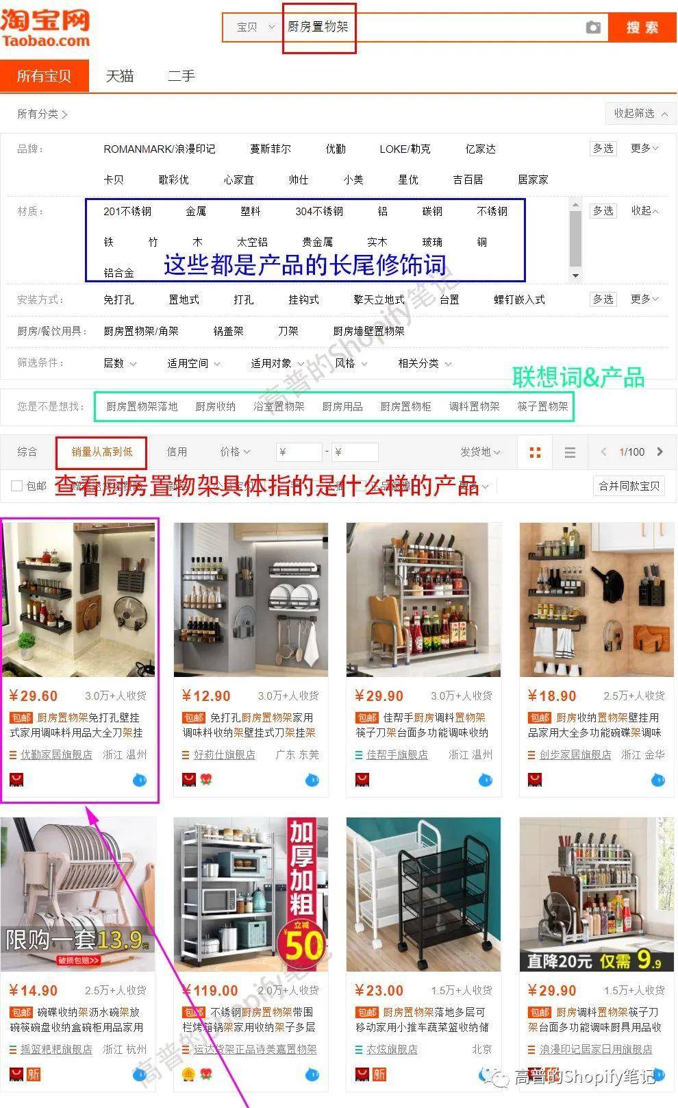 如何通过淘宝为Shopify厨房独立站选品的逻辑。
