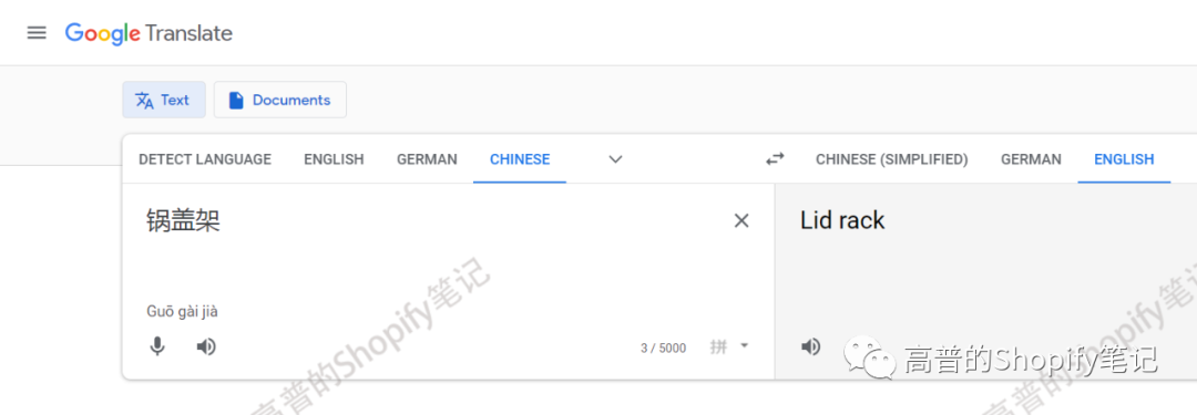 复制 “锅盖架” 到Google Translate机器翻译,出来的结果是这样的: