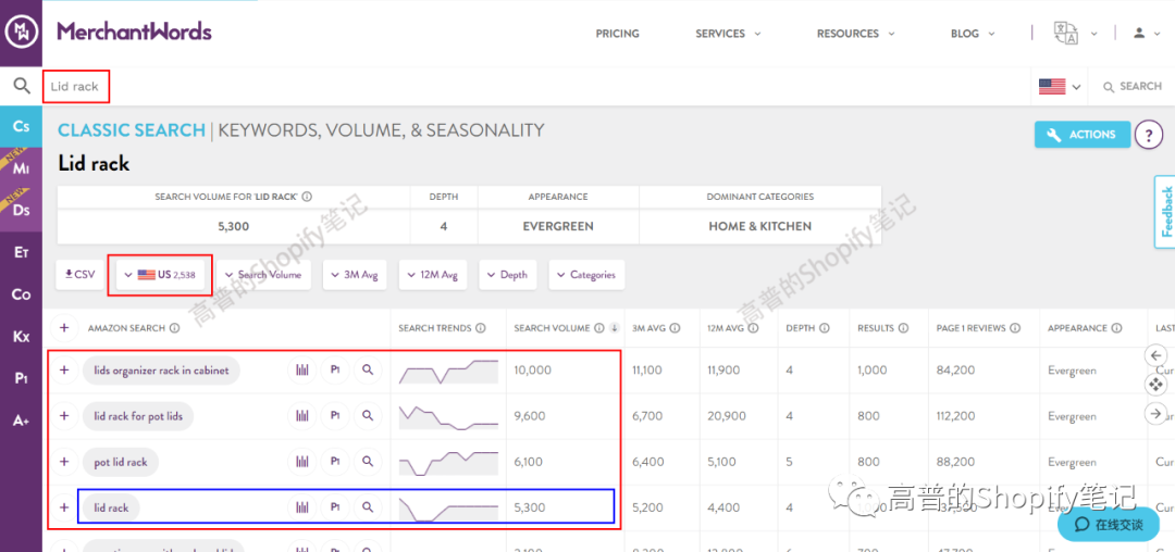 “将错就错”,把"Lid rack"关键词放到亚马逊关键词工具merchantwords里面去搜索验证下。