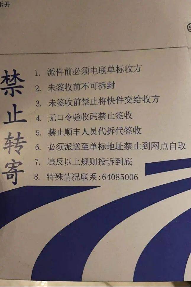 这种做法前段时间一直都很好用,但是后面听说是有小哥因为这个被举报然后丢了工作,所以现在很多小哥都不愿意配合你这么做了。另外,现在小哥也不太敢这么操作,毕竟信封上面也明确写了不可以代签收,转寄,私自拆包等等要求,如下图所示:
