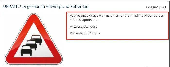 在过去的一两周中,鹿特丹驳船码头的等待时间增加了一倍以上,达到77个小时,而安特卫普的拥堵状况有所缓解,但平均仍需等待32个小时;从比利时港口运出的货物,货主仍需等待一天多的时间。