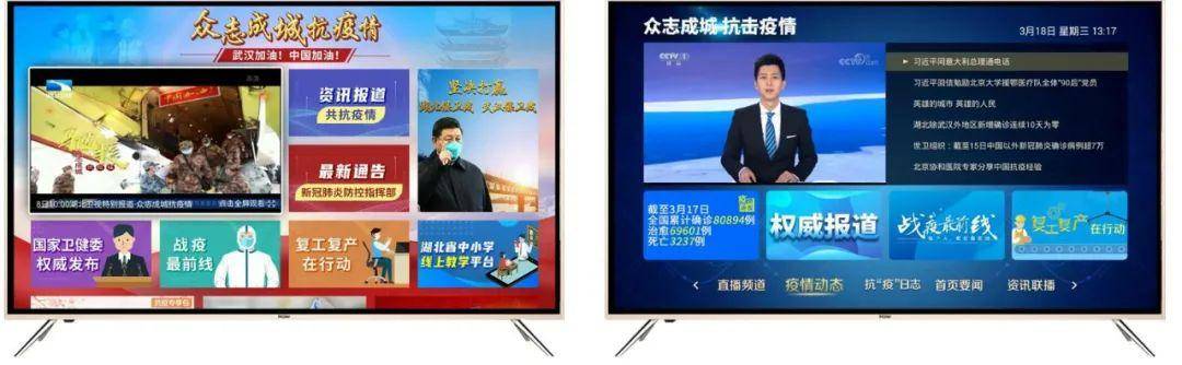 在抗疫期间,为了引导民众安心居家,长江云TV上线了“众志成城抗疫情”“权威报道发布”等新闻服务模块,服务了620万家庭用户,发布了3200多条战“疫”新闻。