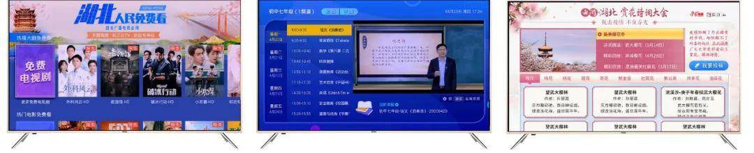 与此同时,长江云TV开通了“湖北人民免费看”频道,播出5000多部免费精品影视内容;推出互动电视娱乐平台,观众足不出户,就可以云赏花、在线K歌以及家庭健身。除此之外,我们还推出中小学电视教学平台,提供14000节线上课程,极大丰富了群众的居家文化生活。