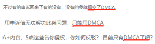 申诉被拒绝怎么办?难道只能束手就擒?对此,不少卖家都提及了DMCA。