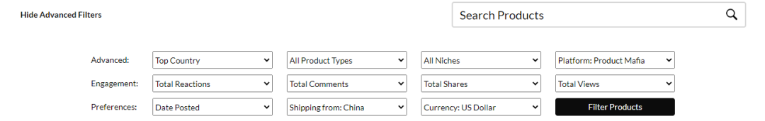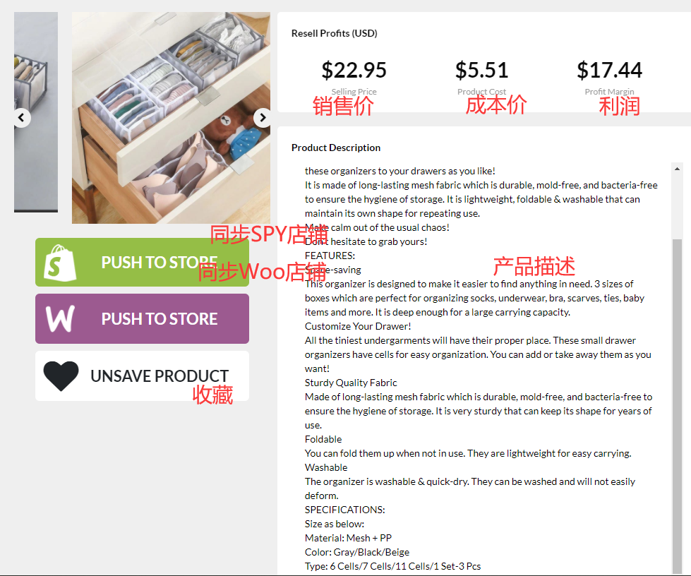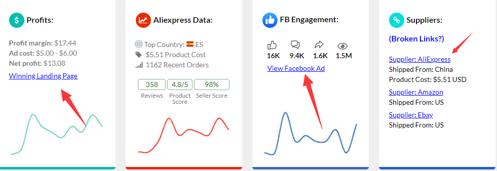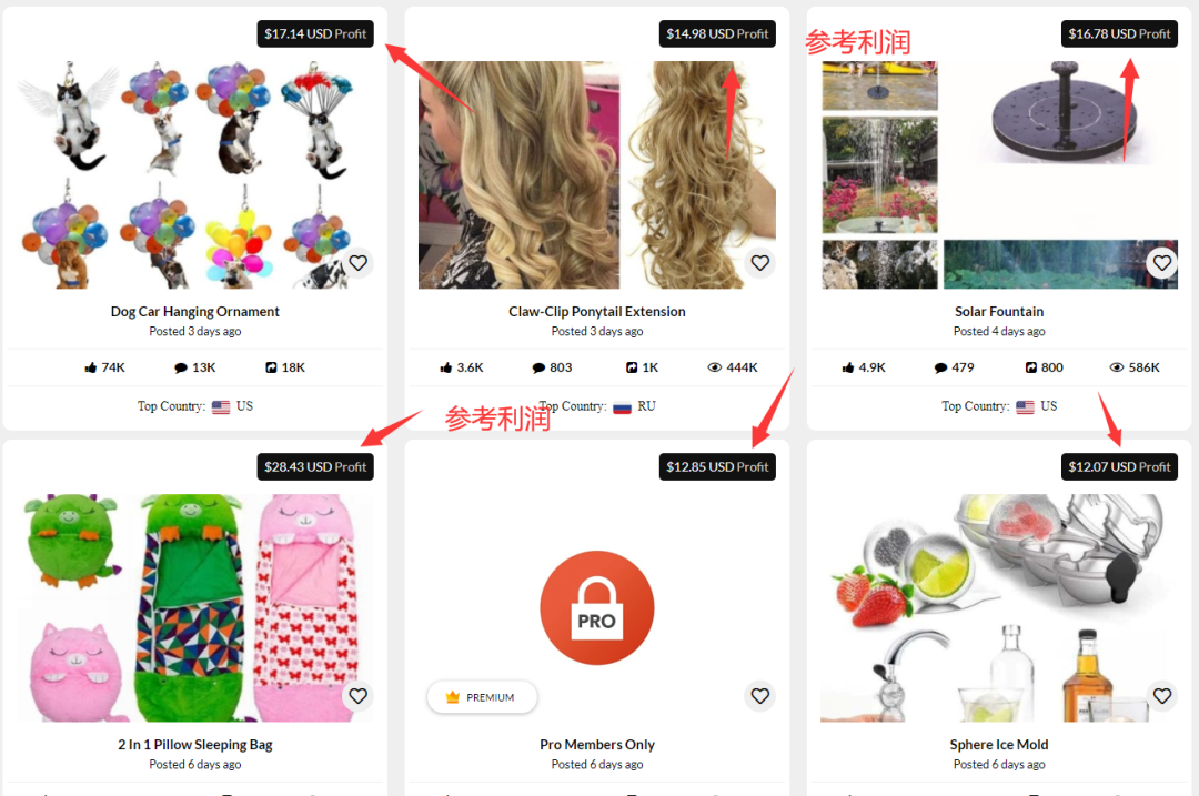 每个产品都有利润参考值,点赞人数、评论人数、分享人数、观看人数4个维度