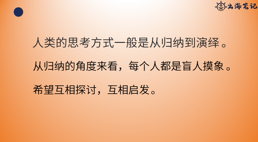 一般是从归纳到演绎,通常是从自己的历史和别人的历史的经验总结一些规律,把这个规律再演绎到你可能面临的新事物,或者说是一些新的场景上去。如果是从归纳角度来看,其实每个人都是盲人摸象了。