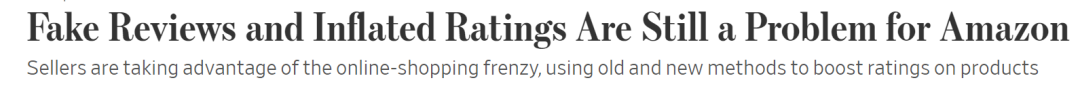 如上图所示,这篇文章有正副两个标题,大致的意思就是说现阶段review操纵和rating操纵在亚马逊上面依旧是一个大问题,而且老的获评方法依旧可以使用,新的操控手法还层出不穷。由于华尔街日报是美国著名媒体,一旦爆出来亚马逊虚假评论的事情以后,势必会影响亚马逊的商誉和股价,之前就有几次类似的事情发生,要知道这可是亚马逊绝对忍受不了的事情,所以接下来针对测评行为的严打,一定势在必行了,只是看靴子到底什么时候落地? 又会以何种方式落地?