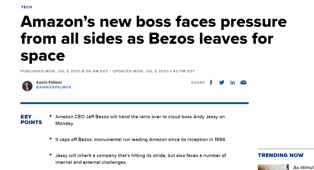 与此同时,新任CEO“俺弟(Andy Jassy)”上位后,会给亚马逊带来什么样的变化?有人说会变得越来越狠……有媒体称姐夫留下一堆“烂摊子”……