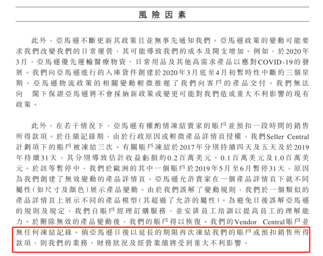 无独有偶,赛维近日也在招股书特别风险提示中,列出了Amazon平台集中度较高的风险和店铺关闭风险。