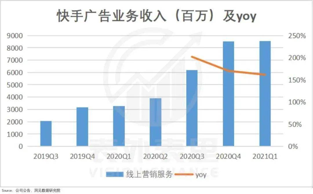 对任何类型的互联网平台来说,广告业务都算是最易切入,且能快速见效的变现渠道。像做电商的阿里、拼多多,同为短视频内容平台的抖音等,拉动业绩的主要收入来源即是广告业务。