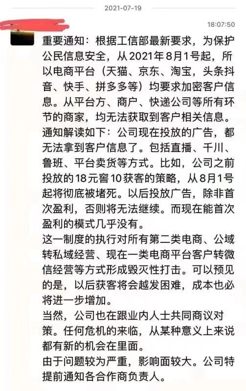 所以,这个截图说,对部分公域转私域都是灭顶之灾,有一定的道理,毕竟很多私域是依靠电话号码运营的。