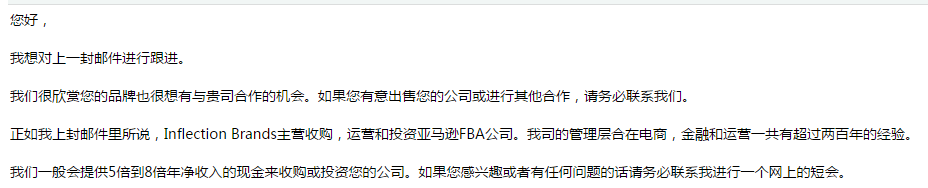 侃妹留意到,近期在卖家社群中,有不少关于资本方收购亚马逊店铺和品牌的讨论。“最近特别多的收购公司找上门”。有卖家爆料,声称自己已经连续收到某资本方的多份收购邮件。
