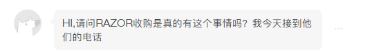 无独有偶,在侃侃的知乎账号后台,也有粉丝留言问道“RAZOR收购是真的有这个事情吗?”相信大家也最想知道解开这个问题。