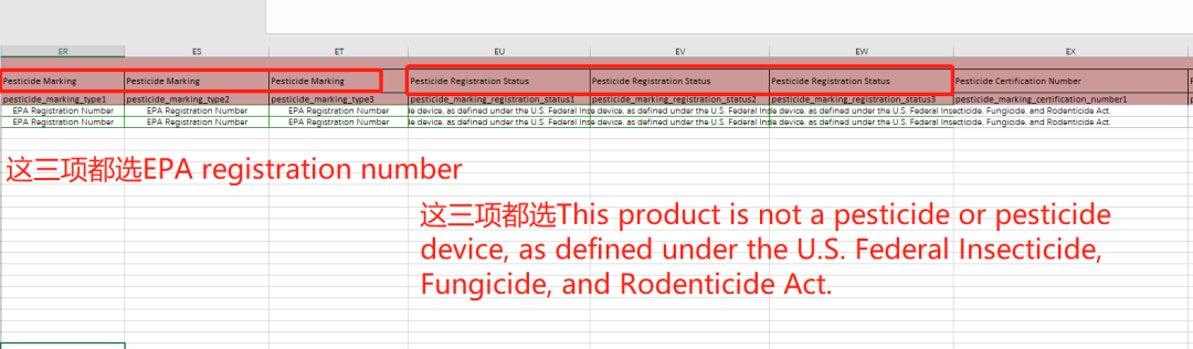 第三步,刷模板删关键词。如果你不确定哪些关键词有嫌疑,那就只留下没嫌疑的词。特别注意的地方是在属性类不要有敏感性词汇。模板中有6个关于EPA的字段要填,方便亚马逊识别你的产品不是杀虫剂(见附图)。