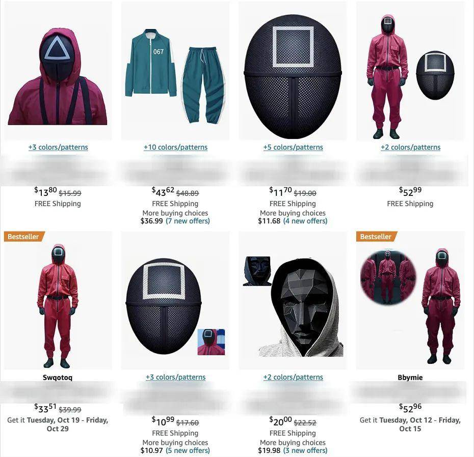 此外,除了亚马逊,在沃尔玛、ebay、wish和etsy等平台也有数千种《鱿鱼游戏》周边商品在出售。