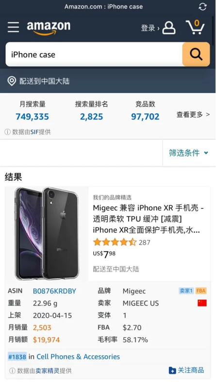 另外还有一点比较重要的是,LinkFox是一款立足于移动端的APP,与其他电脑插件模式的选品工具相比,最大的优势是,它都可以帮助我们通过手机实现快速、方便地选品,利用碎片化时间即可搜集竞品信息,打破固有的PC工作模式,真正做到随手式选品。通过搜索关键词、ASIN码进入亚马逊页面,就能看到实时更新的商品流量来源,还有月销售额、月销量、毛利率等精细化数据。