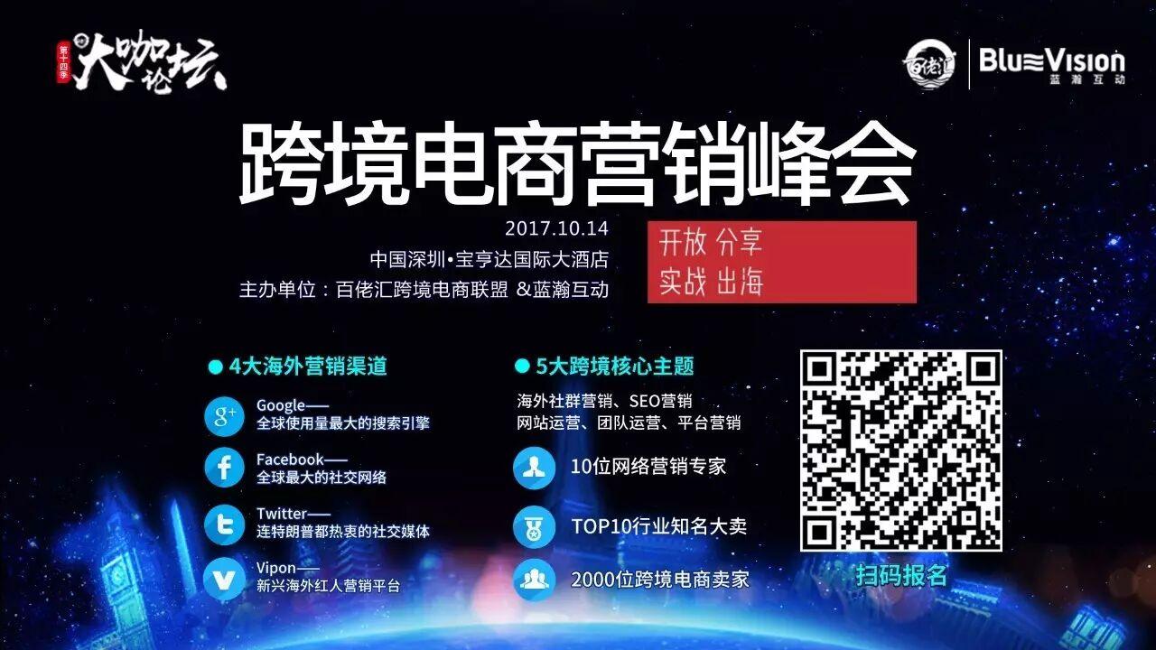 《跨境电商营销峰会暨百佬汇第十四季大咖论坛》将于10月14日在深圳举办。