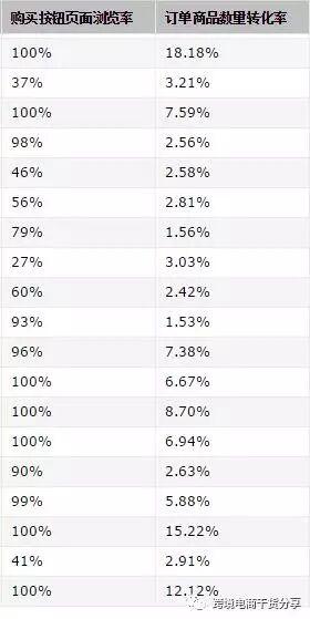 购买页面浏览率:赢得购买按钮的页面浏览次数在总的页面浏览次数中的百分比。