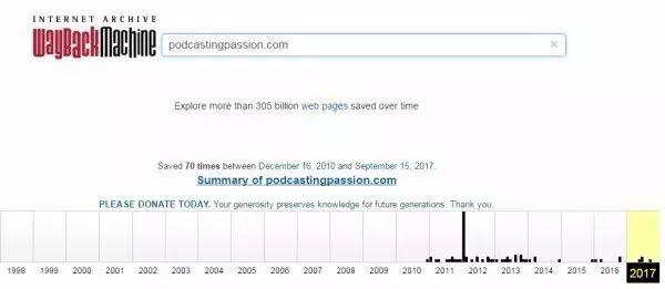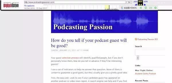 我们打开archive.org页面,在搜索框中输入podcastingpassion.com 这个地址,如下图